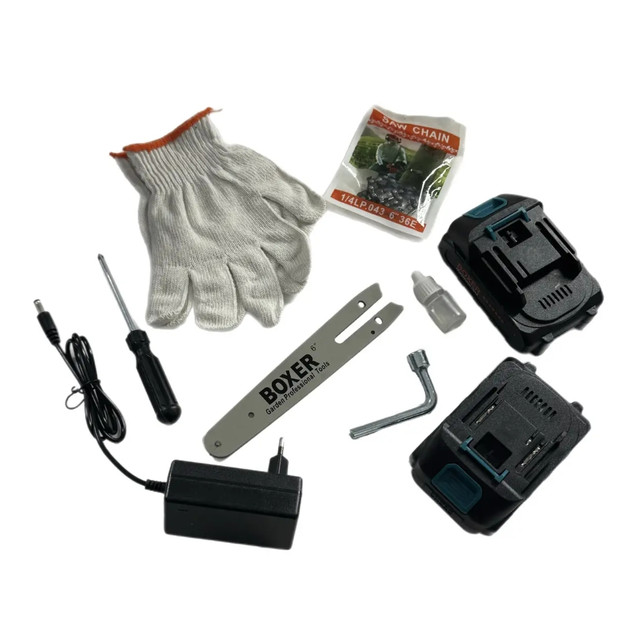 Мініланцюгова акумуляторна пила 6" (24 В) Все ввімкнено: 2 шини, 2 ланцюги, 2 акумулятори та кейс